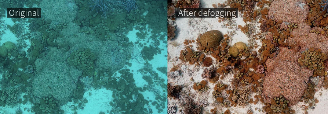 Dehazing Algorithm: Addressing the "backscattering" caused by underwater suspended particles (similar to driving with high beams in fog), the camera's built-in AI chip can remove image impurities in real time, clearing away the fog and revealing the clear sky.